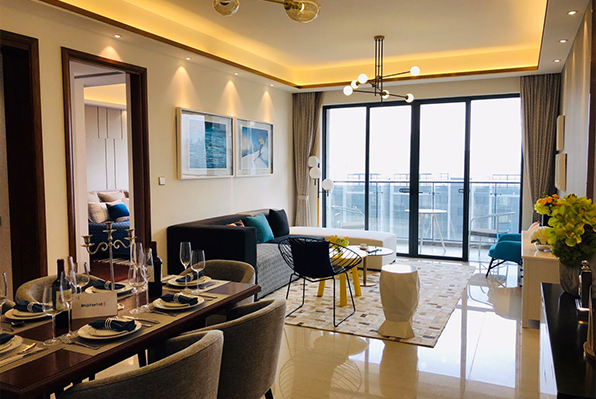 江南岸隨園位於珠海市斗門區白藤湖湖中路1號,項目佔地面積62000㎡,建築面積93000㎡,1.5容積率(別墅折算容積率0.4 左右)、建築密度為24.6%、綠化、景觀暨立體綠化率超過50%(別墅有100%的綠化,屋頂我們做綠化設噴灌系統);由10棟高層及40 棟別墅組成,共721套,其中高層681套,別墅40套。戶型涵蓋75--143㎡二至四房剛需改善戶型,223-514 ㎡四至六房高端別墅產品。項目現已全線封頂,一期的9、10 已交樓入住,剩餘部分頂層單位;二期1、3、4、5、棟已售罄,預計6 月30 日交樓;三期為6、7、8 棟,現準備推出的是7、8 棟,104~144平米(實用率超100%),層高3.15,兩梯三戶,南北對流,精裝交付。